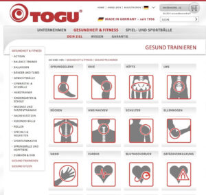 Ende 2012 erneuerte TOGU seinen Online-Markenauftritt. Der Grund für den Relaunch: “Eine benutzerfreundliche Navigation stand im Fokus, die sich an den Bedürfnissen des Users orientiert”, sagt Vertriebsleiter Wolfgang Moosleitner. Das neue “Gesund Trainieren” Konzept, welches das Unternehmen aus dem oberbayerischen Prien am Chiemsee nun präsentiert, fügt sich hier als wichtiger Baustein ein. Übersichtlich und schnell findet jeder auf der Website das richtige Bewegungsprogramm für gesundes Training. Ob jemand abnehmen oder die mentale Fitness stärken möchte, an Rücken-, Schulter- oder Knieschmerzen, Bluthockdruck oder Diabetes Typ2 leidet: “Gesund Trainieren” bietet passende Lösungen. Das fachlich fundierte Programm, das Allgemein- und Sportmediziner mit TOGU entwickelten, lässt sich selbstständig zu Hause umsetzen und in den Alltag integrieren. Einsteiger jeden Alters können die Übungen ausführen. Zudem lassen sie sich in der Schwierigkeit so variieren, dass sie auch für trainierte Sportler geeignet sind, die Muskelgruppen stärken, ihre Balance verbessern oder individuelle Gelenkschmerzen lindern wollen. TOGU hat für jedes dieser Bewegungsprogramme jeweils ein Geräte-Set zusammengestellt. Diese Sets ermöglichen es, die Übungen effektiv und gesund auszuführen. Sie verwirklichen also genau die Grundsätze, für die auch das Konzept “Gesund Trainieren” steht.