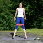 So wird’s gemacht: Das Mini Band ist wieder oberhalb Deiner Fußgelenke. Du beginnst im aufrechten Stand und gehst in die Kniebeuge. Danach drückst Du Dich über die Fersen ab und springst so hoch wie möglich. Sobald Du „gelandet“ bist, gehst Du direkt wieder in die Kniebeuge.