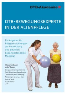 Seit kurzem kann innerhalb einer modularen Reihe der Titel „DTB-Bewegungsexperte in der Altenpflege“ erworben werden. Damit wird der Nachfrage nach Weiterbildungen seitens der Altenpflegeeinrichtungen nachgekommen; denn sie sind durch das Präventionsgesetz aufgefordert, für die Bewohnerinnen und Bewohner von Einrichtungen der stationären Pflege Bewegung und Mobilität zu fördern. Die Weiterbildungen richten sich daher explizit an Mitarbeitende in der Altenpflege in Form von individuell geplanten Inhouse-Schulungen in der Einrichtung.