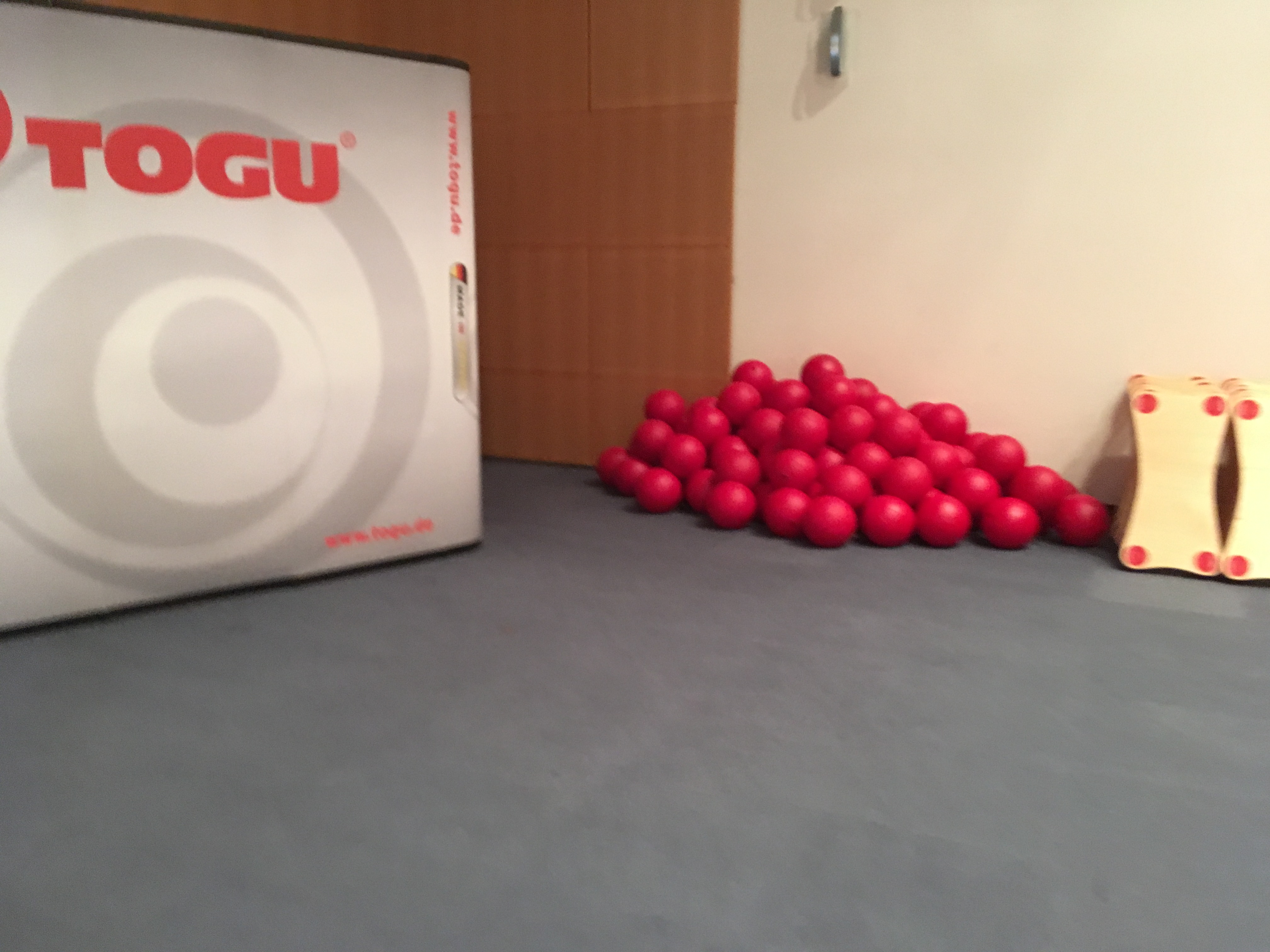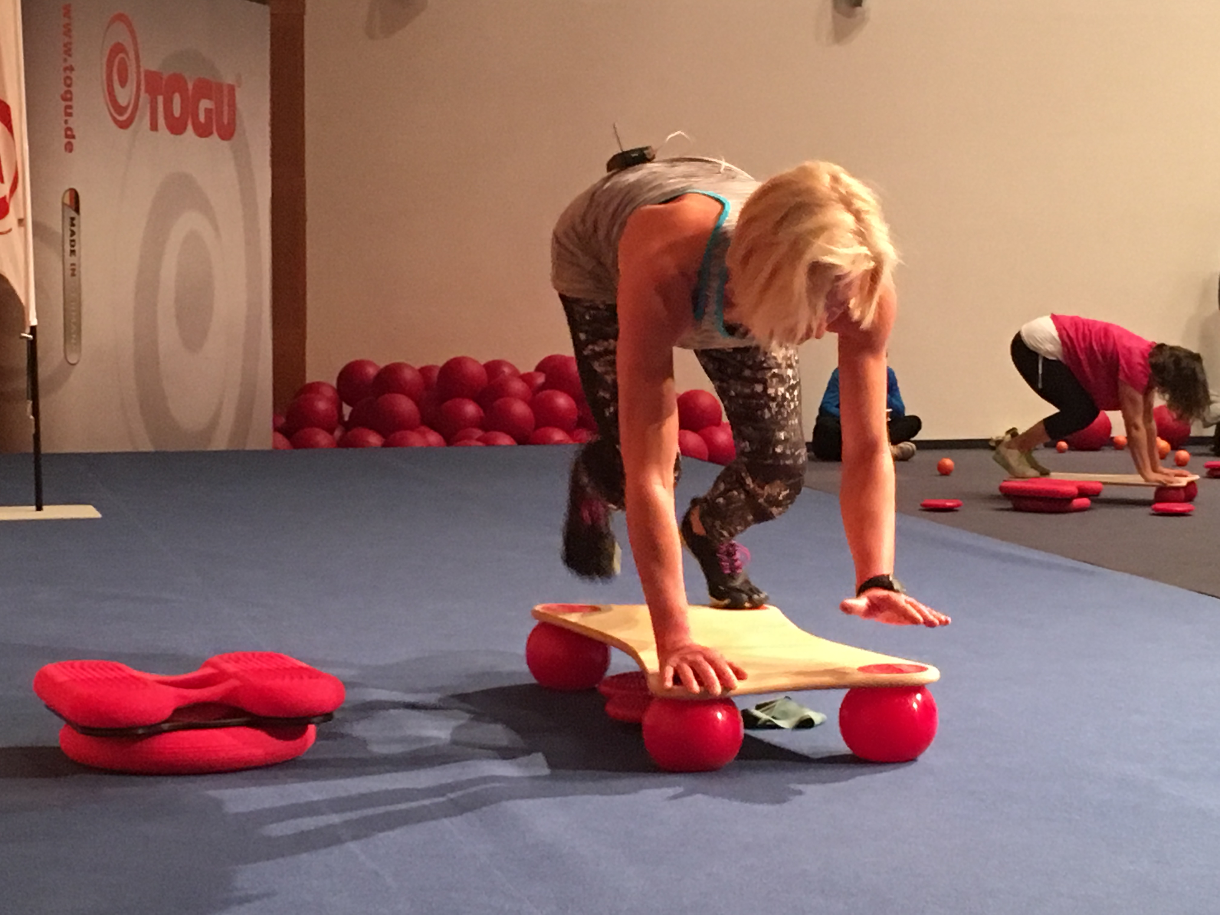 Ein gut trainiertes und integriertes Fasziennetz beeinflusst die Kraftentwicklung und -übertragung, optimiert die Belastbarkeit von Sehnen und Bändern und schützt die Muskulatur vor Verletzungen. Der Spezialist für luftgefüllte Trainings- und Therapiegeräte bietet hierfür innovative und vielfältige Produkte zur Regeneration, Selbstmassage und Entspannung an. So kann die luftgefüllte Actiroll® – erhältlich mit Noppen- oder Wellenoberfläche – stufenlos mit der beigelegten Handpumpe auf unterschiedliche Härtegrade eingestellt und somit auf individuelle Anforderungen angepasst werden. Neben der Faszienrolle konnten die Teilnehmer des TOGU Tages auch noch weitere Produkte aus dem TOGU Sortiment, wie beispielsweise den TOGU Jumper® oder den Balanza® Ballstep®, ausgiebig testen.