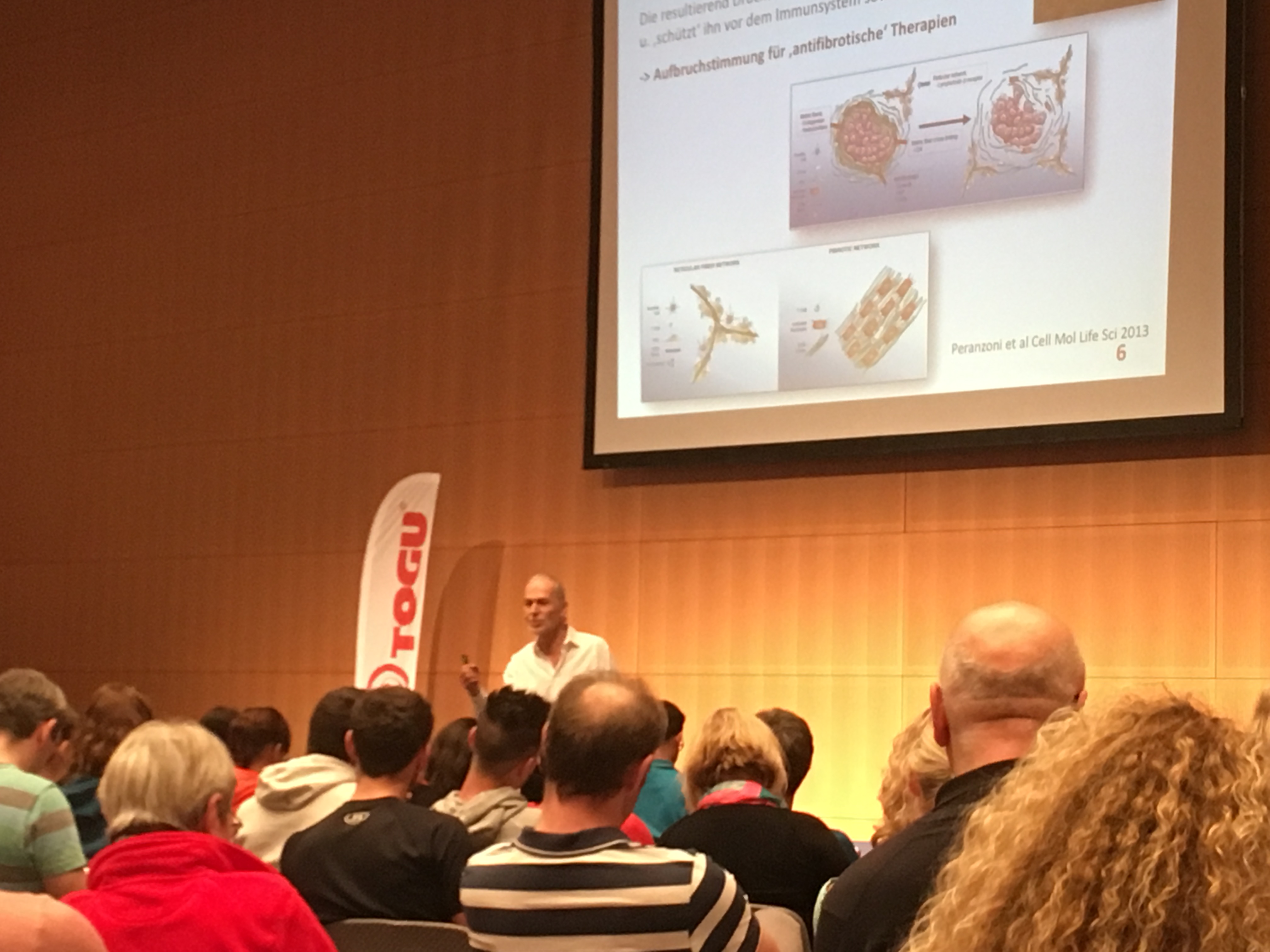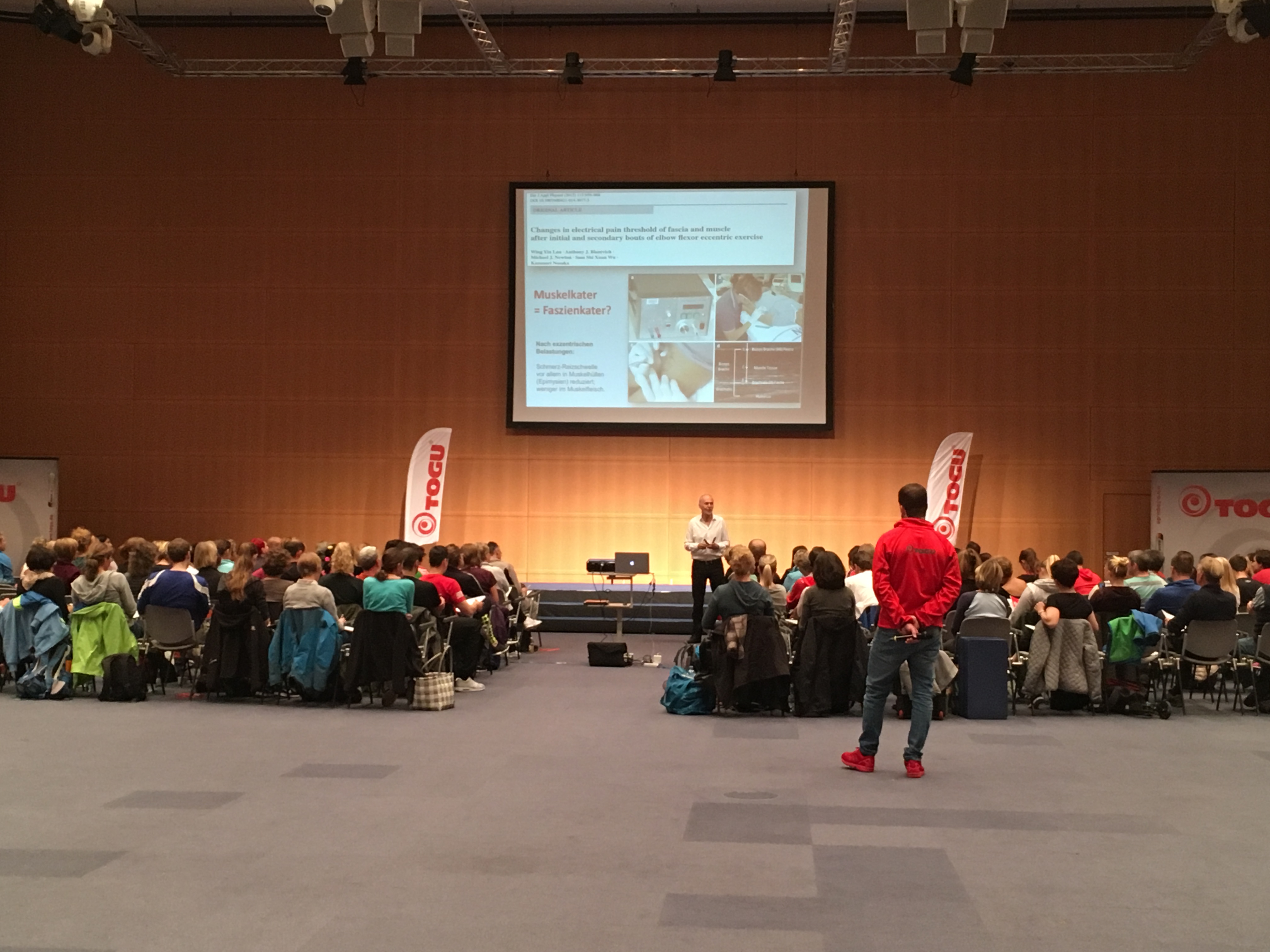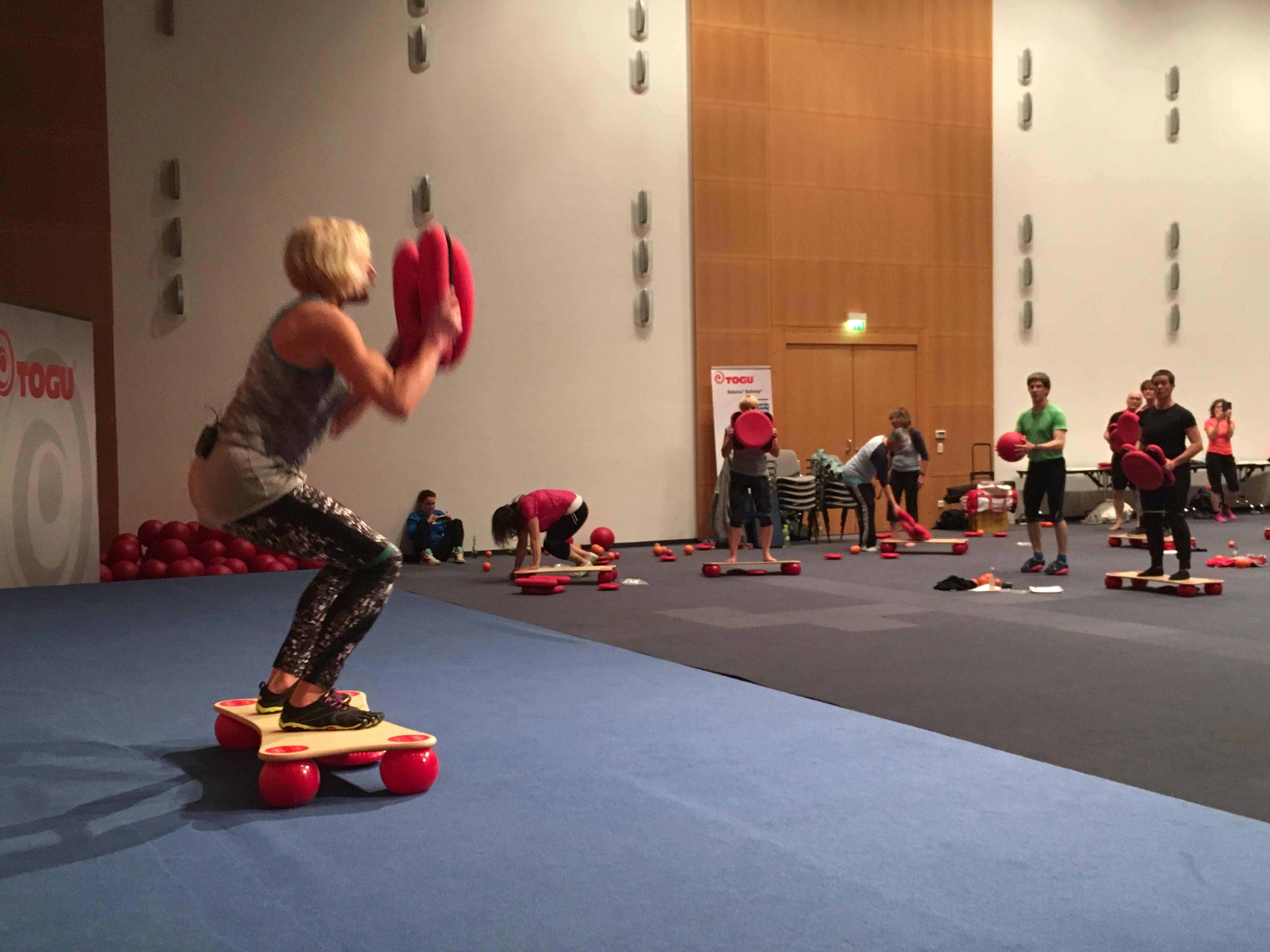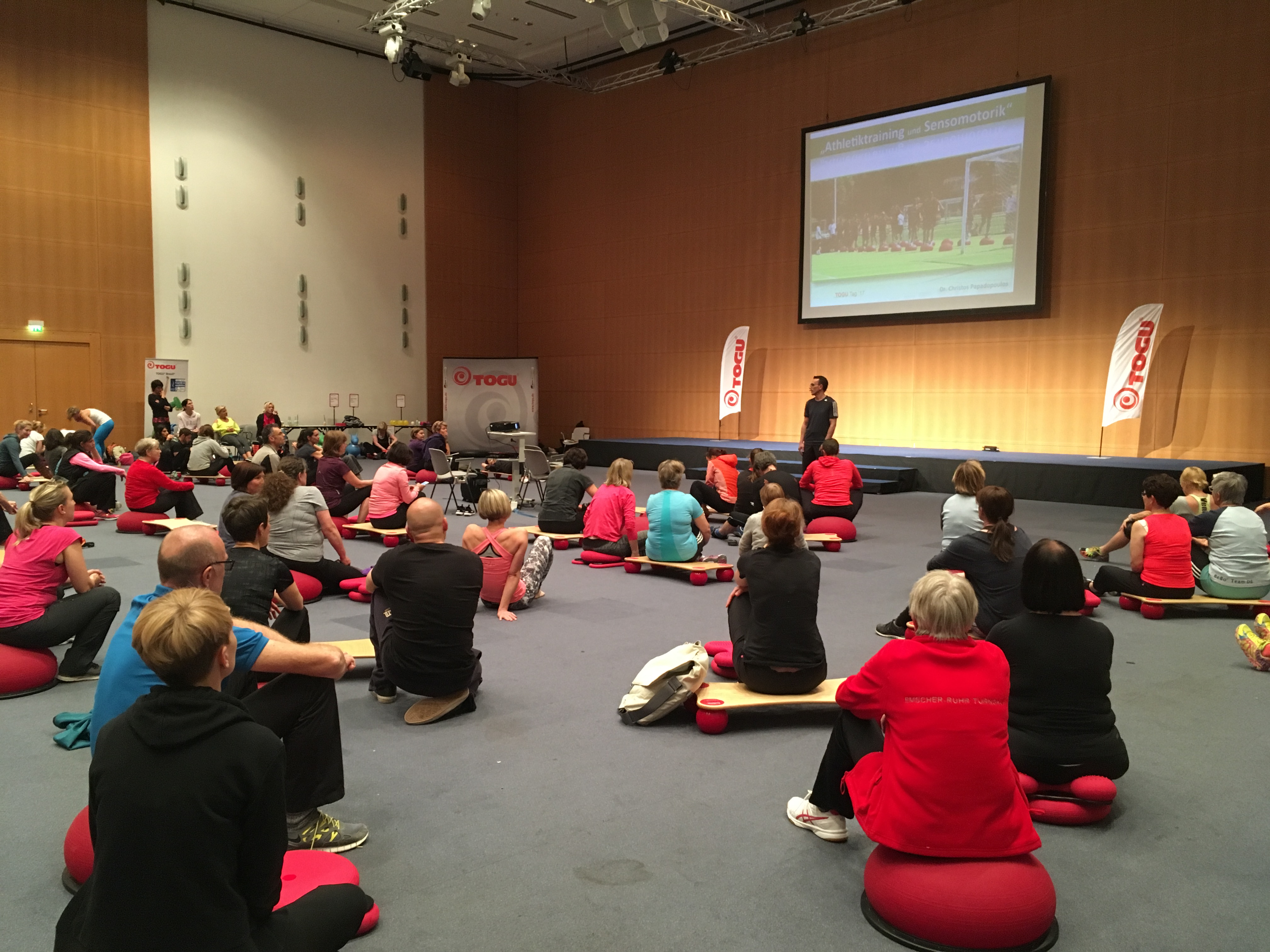 „Wenn du nach sechs Stunden Theorie-Input und praktischen Anwendungsbeispielen in knapp 150 zufriedene Gesichter blickst, macht dich das schon ein bisschen stolz. Das Feedback der Teilnehmer war großartig“, fasst TOGU Geschäftsführer Giovanni Angelini den Internationalen TOGU Tag am 05. April, einen Tag vor Messebeginn der FIBO, zusammen. Der Spezialist für luftgefüllte Trainings- und Therapiegeräte präsentierte seinen Partnern sowie den Fachleuten aus den Bereichen Bewegung, Gesundheit, Fitness und Sport ein abwechslungsreiches Theorie- und Praxisprogramm zum Thema „Sensomotorik, Faszien und Athletiktraining“. Referenten waren dieses Jahr Dr. Robert Schleip, Divo Müller, Dr. Christos Papadopoulos und Antje Hammes.