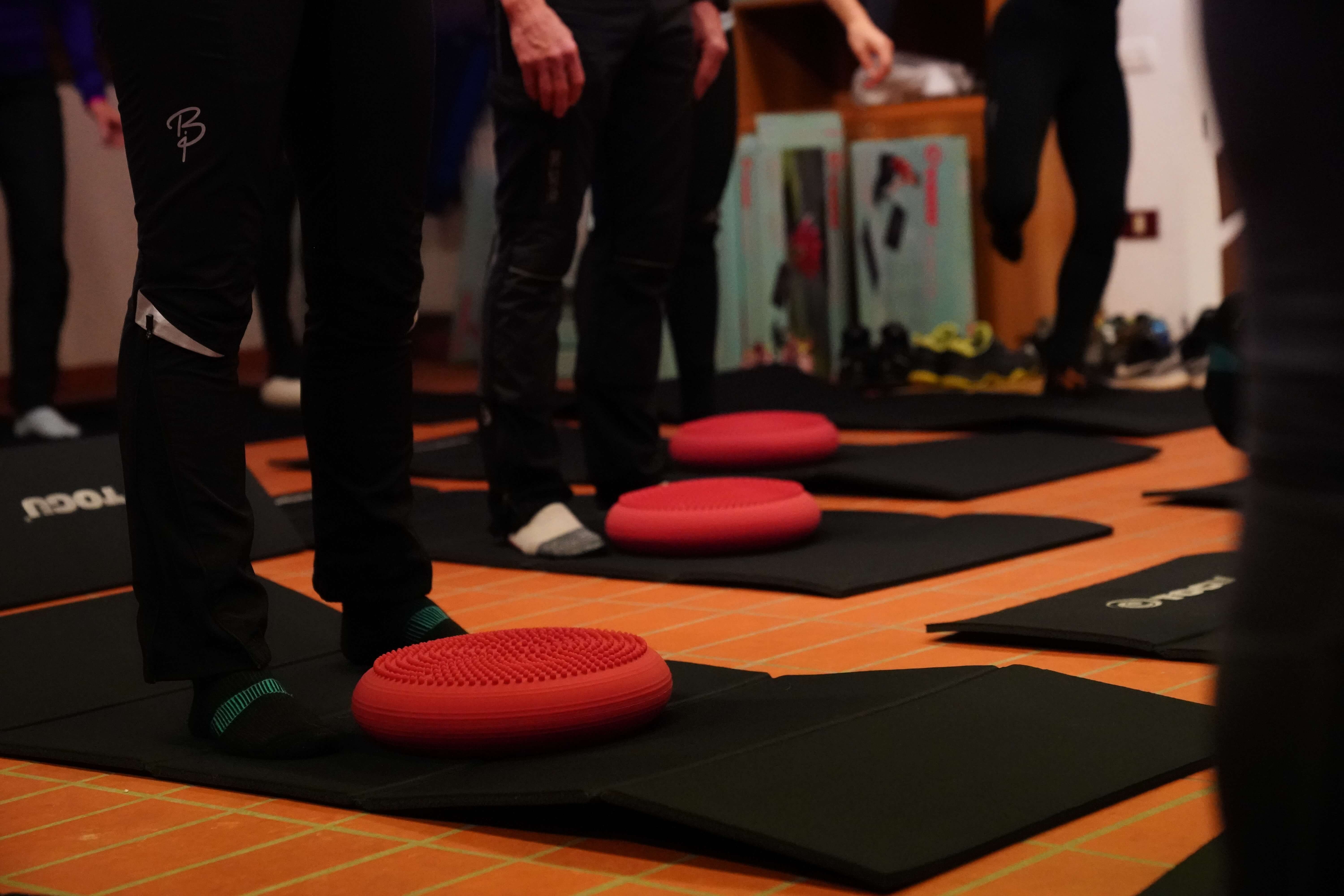 Jeder Camp-Tag hatte einen Schwerpunkt und so stand zum Beispiel an einem Tag die Balance und Stabilität im Vordergrund. Hier kamen unter anderem das Original Dynair® Ballkissen® und die TOGU® Easy Matte unter der Leitung von Sigrun Hannes zum Einsatz. Schnell wurde jedem Teilnehmer klar, dass man sich beim Thema Gleichgewicht und Koordination immer weiter verbessern kann und die Steigerung auch in der Loipe spürt. Ein weiterer Vorteil ist, dass man die praktischen und langlebigen TOGU Geräte überall hin mitnehmen kann und die Übungen auch perfekt zu Hause durchführen kann.