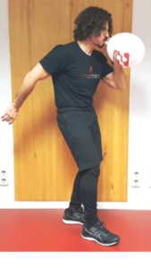 Stehend gegen die Wand (leichte Prone Plank Variante) In der Position 4-5 Atemzyklen ausführen