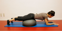 In Unterarmstütze Position (Prone Plank) mit einem Halbball (z.B. TOGU® Jumper) unterhalb der