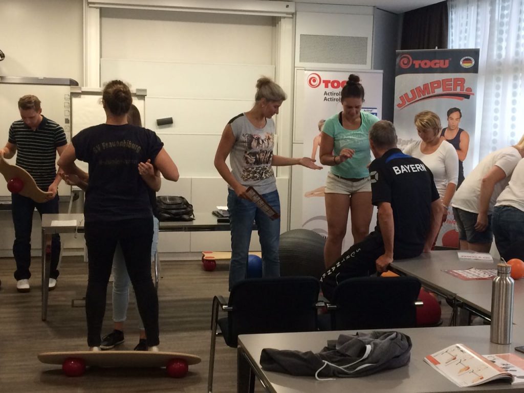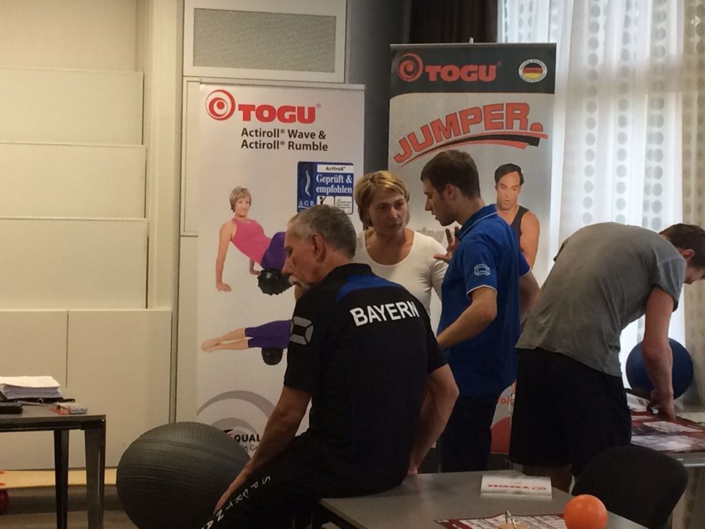 As part of the cooperation between the BVV (Bavarian Volleyball Association) and TOGU, the present trainers had the opportunity to learn about TOGU products and try out the novelties at the BVV trainer training at the Oberhaching sports school with national coach Peter Meyndt. Above all in the prevention and injuries prophylaxis in the field of ankle, knee and hip – TOGU products are already used in daily training.