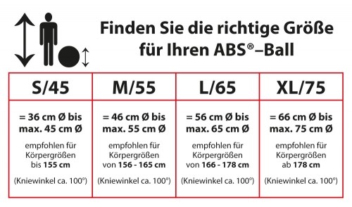 Due to the special anti-burst material, the shape of the ball may change during use. This has no influence on the effect during sitting or the movement sequence during exercises. The decisive factors are the dynamics and the safety system of the ball, not its circular nature. Due to packaging, an ABS® ball will still have some wrinkles after inflation. Due to the special safety material, these wrinkles can also be permanently visible on an inflated ABS® Ball. This does not affect the functionality or safety in any way.